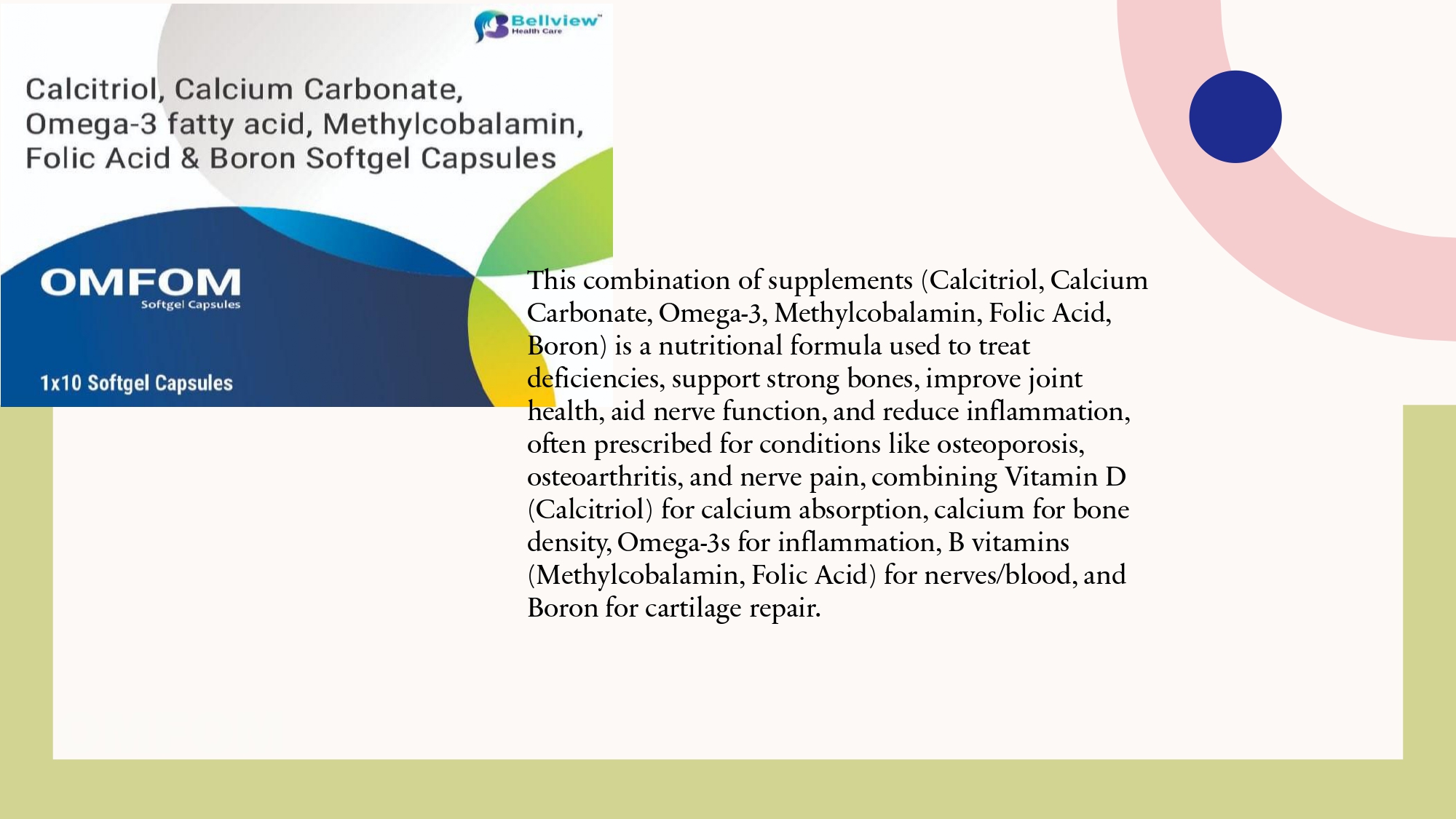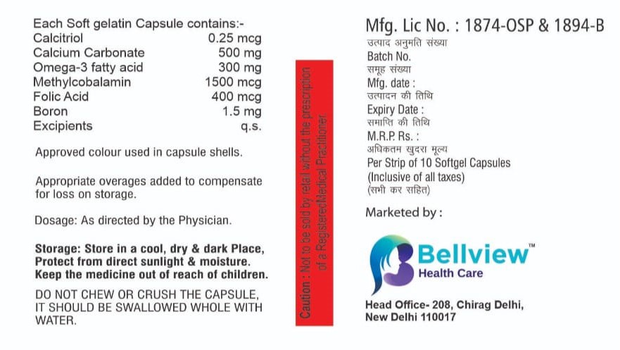 Calcitriol, Calcium Carbonate, Omega-3 fatty acid, Methylcobalamin, Folic Acid & Boron Softgel Capsules OMFOM Softgel Capsules 1×10 Softgel Capsules